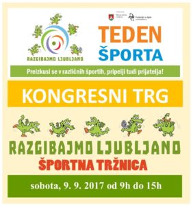 Predstavitve so namenjene otrokom, odraslim, družinam starejšim, že aktivnim in tistim, ki za sebe, za otroke ali prijatelje še iščete pravo vadbo. Na enem mestu bo svojo dejavnost in možnost vadbe predstavilo okoli 100 ponudnikov vadbe.Spoznali boste lahko različne panoge in dejavnosti ter se pozanimali o možnosti brezplačne vadbe za otroke in starostnike, ki jo, preko Letnega programa športa, sofinancira Mestna občina Ljubljana.